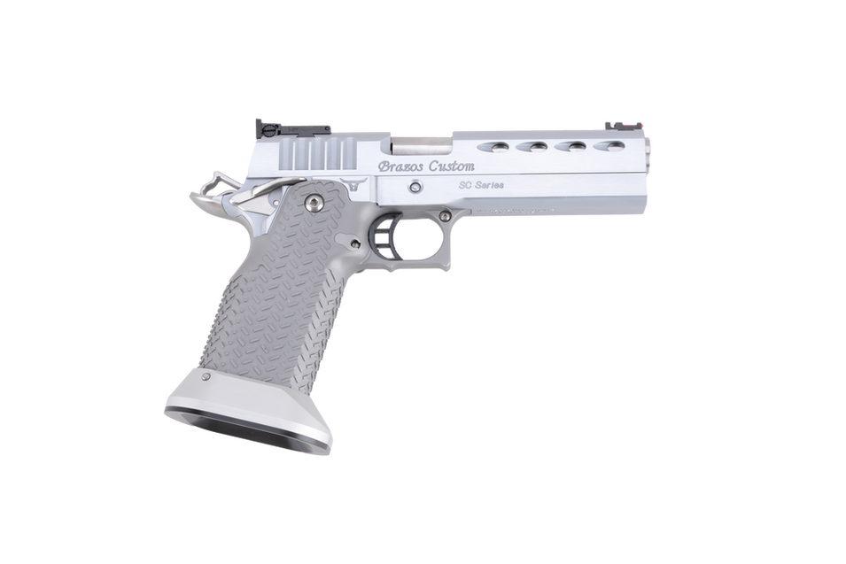 More “custom” than “semi,” the Brazos SC limited gun is a competition-ready pistol designed specifically for USPSA Limited Division shooting. "Semi Custom" means it is a package deal that includes those features most often requested by shooters wanting a limited style pistol. Because these guns are built to a defined set of specifications we are able to offer them at a more affordable price point and with immediate or shorter delivery time frames. Available only in 9x19 or 40 S&W calibers with long dust cover as shown.
